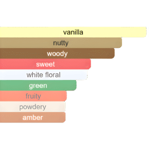 عطر غني وكريمي يجمع بين دفء المكسرات ونفحات الأزهار الناعمة مثل الياسمين وزنبق الوادي. تضيف اللمسات اللبنية ملمساً ناعماً وحسياً، بينما تمنح الفانيليا وفول التونكا قاعدة دافئة وحلوة تترك أثراً أنيقاً وجذاباً.