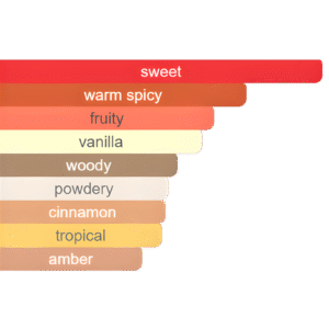 عطر حلو وحار، تمتزج فيه حلاوة الكريمة المُكرملة والأناناس مع دفء التوابل، قبل أن يستقر على قاعدة خشبية ومسكية. رائحة فاخرة وجذابة.