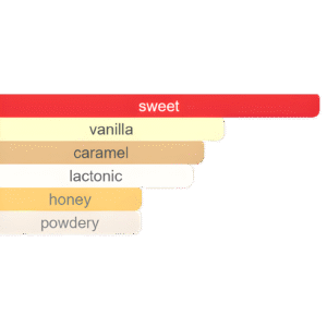 عطر شهي وناعم، تبدأ رائحته بالكراميل والحليب والسكر لمسة حلوة ولذيذة. يمنح القلب الزهري والعسل خفة ورقة، بينما تغلف القاعدة من الفانيليا والبراليني والمسك البشرة بعطر دافئ ومريح وجذاب.