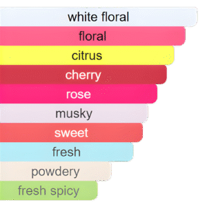 عطر ناعم ومشرق، تتفتح فيه الانتعاشة الفاكهية والزهرية برقي قبل أن تذوب في حجاب مسكي راقٍ. يعكس هالة رومانسية مفعمة بالحيوية والجاذبية الرقيقة.