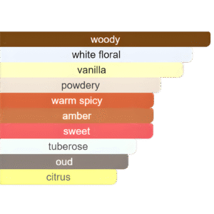عطر فاخر وساحر يجمع بين إشراقة البرتقال الدموي والكمثرى مع قلب غني من الزهور البيضاء والكونياك والأخشاب الثمينة. تستقر القاعدة على مزيج عميق من العود والفانيليا والعنبر يمنح دفئاً حسياً وأناقة فاخرة تدوم طويلاً.