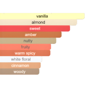 عطر شهي وحار، تبدأ رائحته بحلاوة اللوز مع قلب زهري ودافئ من زهرة البرتقال والقرفة والورد. تمنح القاعدة الغنية من الفانيليا وفول التونكا وخشب العنبر عمقاً وحسية، ليترك أثراً أنيقاً ومريحاً يدوم طويلاً.