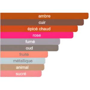 عطر نابض بالحياة وفاخر، تمتزج فيه حلاوة الفواكه مع التوابل الرقيقة والزهور الراقية، قبل أن يستقر على قاعدة خشبية وعنبرية. رائحة جذابة وأنيقة.