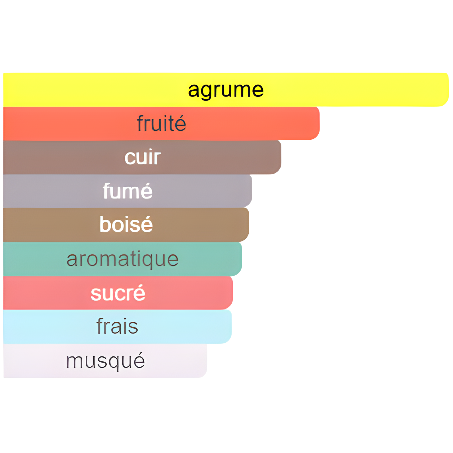 • Notes de tête : Citron, Ananas, Bergamote, Cassis, Pomme