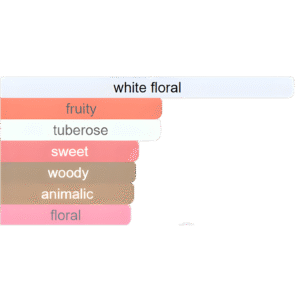 • Notes de cœur : Tubéreuse, Jasmin, Gardénia, Ylang-ylang, Chèvrefeuille, Rose, Pivoine