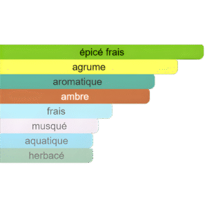 Un parfum frais et aromatique, où l’éclat des agrumes et du gingembre s’harmonise avec des notes aquatiques et herbacées, avant de s’ancrer dans une base ambrée moderne et puissante. Une fragrance dynamique et raffinée.