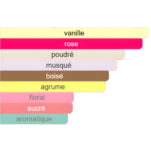 • Notes de base : Vanille, Musc blanc, Cèdre