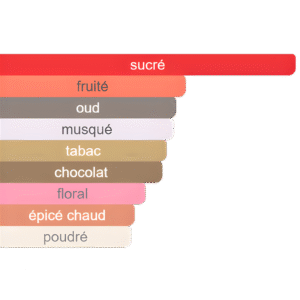 Un parfum gourmand et intense, où la douceur du raisin et du chocolat s’ouvre sur un cœur boisé et musqué d’oud. La base riche de toffee, tabac et notes florales apporte profondeur et sensualité, laissant un sillage enveloppant et captivant.