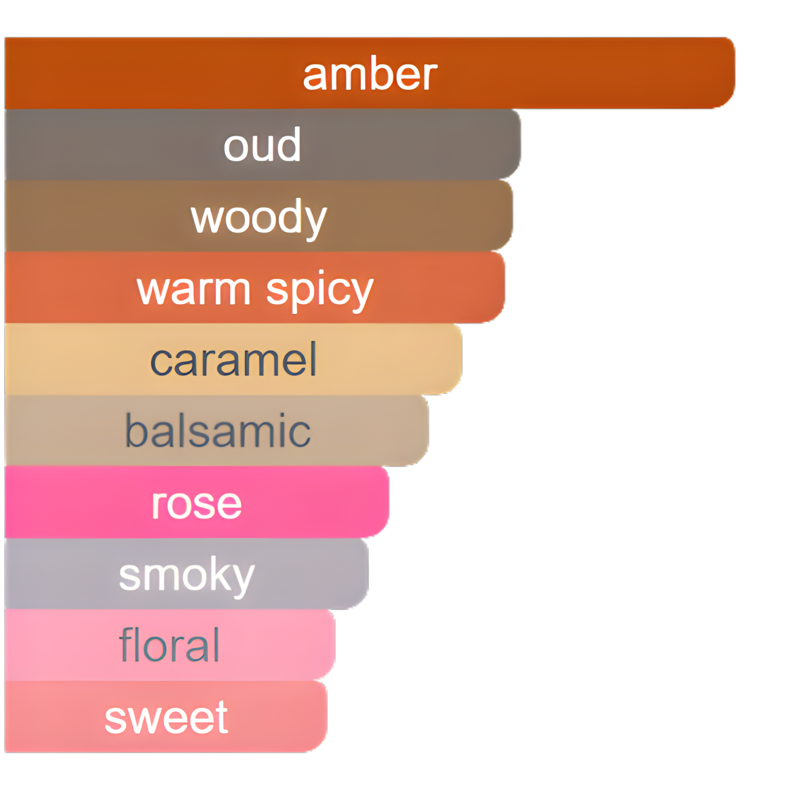 • Notes de cœur : Oud, Caramel, Notes fleuries, Patchouli