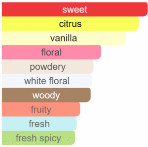 Un parfum frais et lumineux où la vivacité des agrumes rencontre la douceur juteuse de la poire. Son cœur floral élégant révèle une féminité raffinée, avant de s’épanouir dans une base chaleureuse et addictive mêlant vanille et praliné. Une fragrance moderne, séduisante et irrésistiblement confortable.