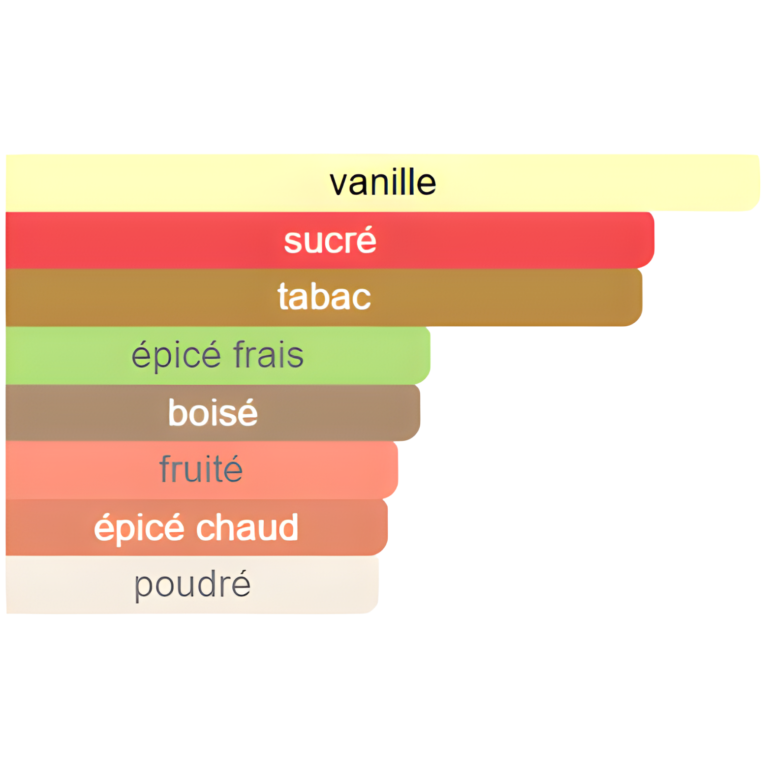 • Notes de cœur : Vanille, Tabac, Fève de tonka, Cacao